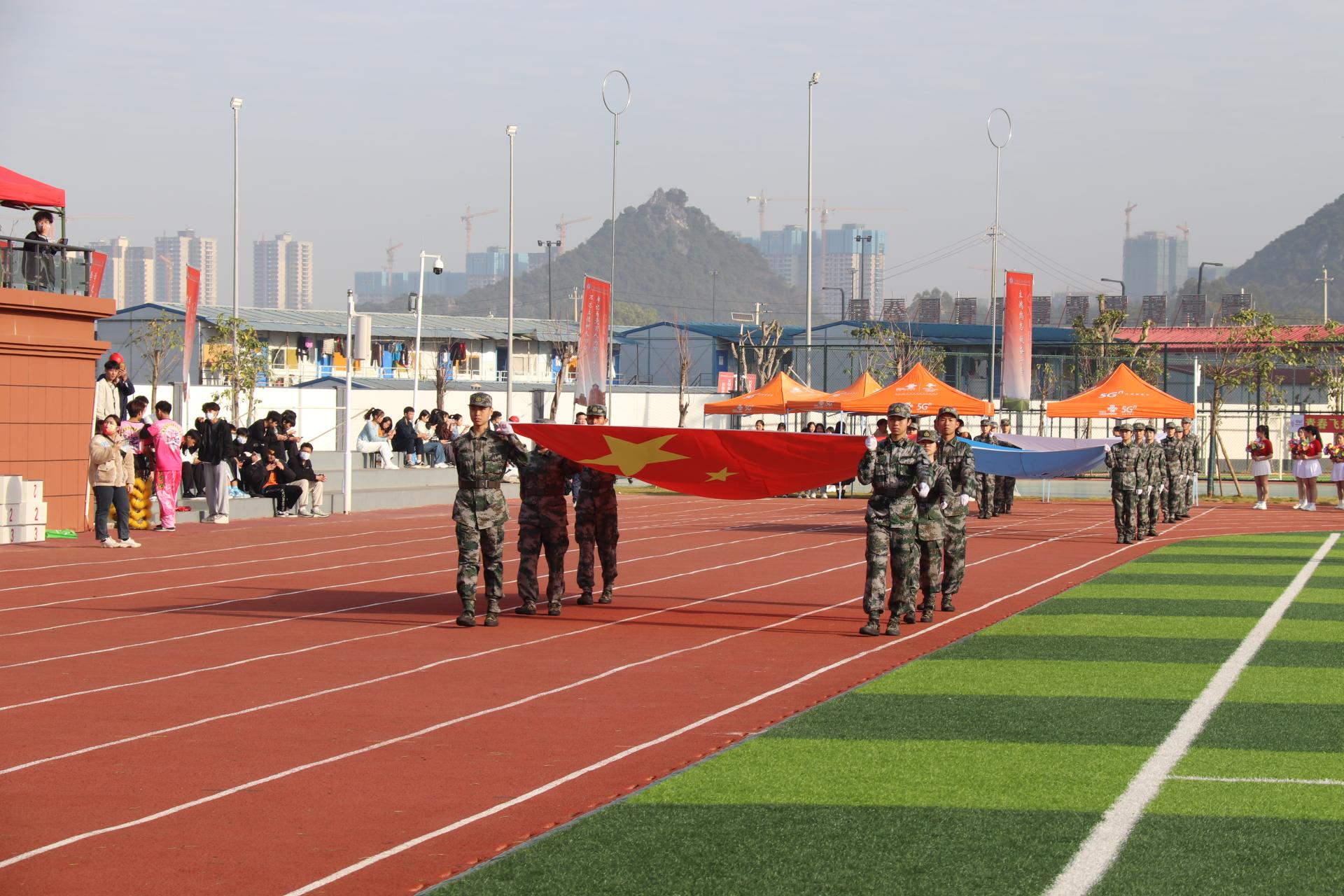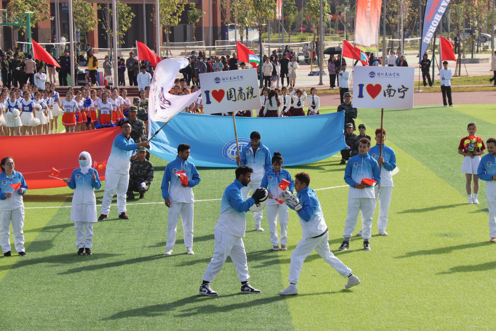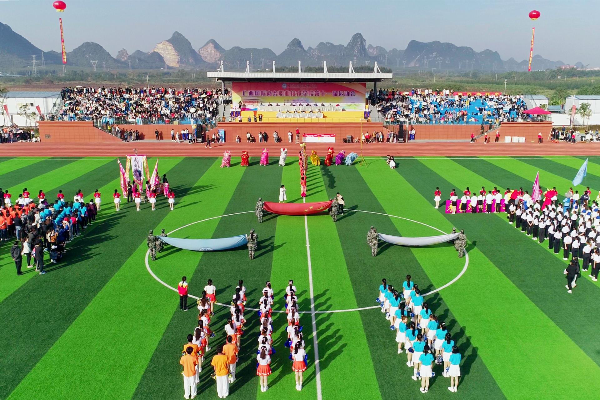 12月2日上午,我校第十一届运动会开幕式在东盟校区田径场隆重举行。学校党委书记谢云,党委副书记、校长王国红,党委副书记青增计,党委委员、副校长班克庆,党委委员、纪委书记甘忠,副校长蒋百平出席开幕式。各二级学院负责人、近7000名师生代表参加了开幕式。开幕式由班克庆主持。