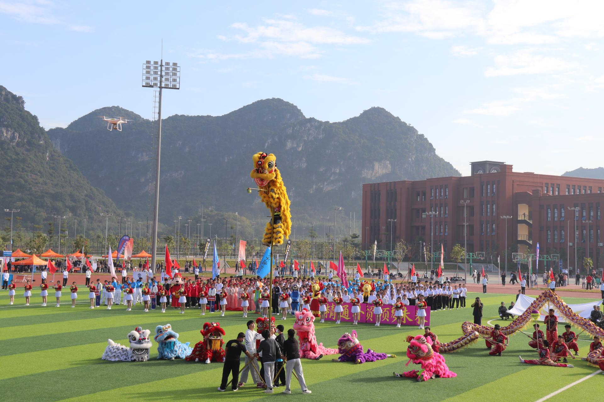 “龙狮舞青春,击鼓震精神”,现场龙狮队、啦啦操队和各二级学院轮番进行精彩的开幕式表演,向我们展现飞扬的激情、青春的梦想、创造的活力和对未来的美好向往。开幕式结束后,运动员们展开了第一天比赛的角逐。
