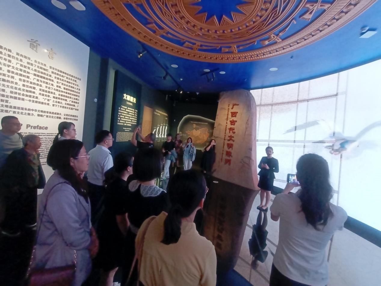 签约揭牌仪式结束后,我校师生在讲解员的带领下,参观了博物馆“广西古代文明陈列”展厅,学习了解广西古代历史和文明的变迁,感受广西壮阔的历史进程和深厚的文化底蕴,在“烽火南疆——广西近现代革命史陈列”展厅,师生们认真学习了解近代以来广西人民的英勇奋斗历程,深刻领悟广西各族人民在中国共产党领导下走过的革命岁月和取得的丰功伟绩。
