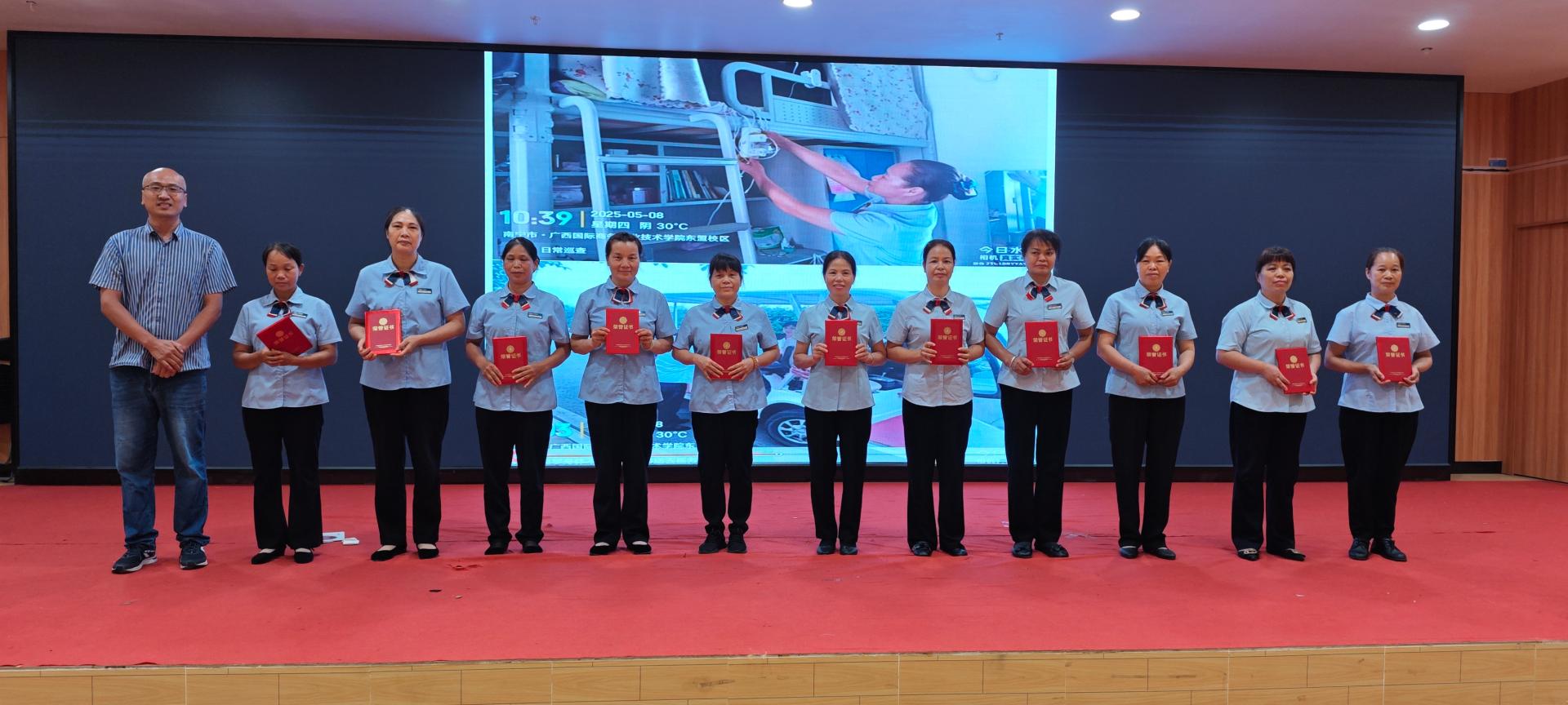 7月10日,我校东盟校区师生活动中心三楼报告厅气氛热烈,学校 “最美宿管员”颁奖仪式在此顺利举行。文幼娇等11位深受同学们喜爱的宿管员荣获 2025 年学校“最美宿管员”荣誉称号,受到表彰。