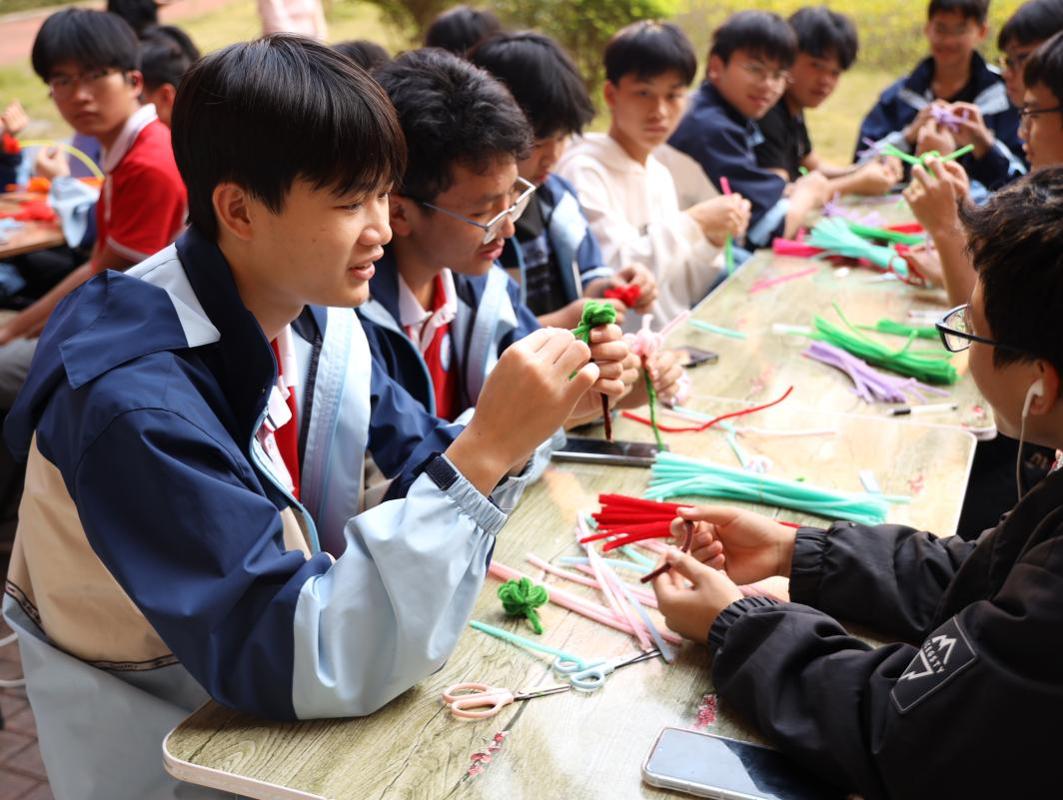 在实训室外走廊绿地上,精彩的手工作品展览吸引了众多目光,在林海霞、张文静老师和学生志愿者的指导与带领下,贵港八中的同学们在轻松愉悦的氛围里,体验到婴幼儿托育专业“艺术+实践”的教学魅力,也在动手协作中播下了对学前教育职业向往的种子。