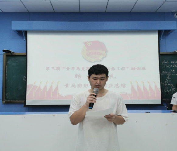最后,团委副书记李冬作总结讲话。他首先对顺利结业的青马班学员表示了热烈的祝贺,随后,对学员们提出三点希望:一是要胸怀祖国、志存高远、提升素质、锤炼品格,学好科学文化知识,重视自身综合素质能力的培养,时刻以青年马克思主义者的标准来衡量自己,用马克思主义中国化的最新成果武装自己。二是要学习贯彻习近平总书记的系列讲话精神,并以此不断鞭策自己,不断深化自我,持续推动自己成为社会主义的建设者和接班人。三是希望广大学员不辜负党对青年的热切关怀和殷切期望,牢固树立紧跟党走中国特色社会主义道路的坚定信念,在全体学生中充分发挥模范带头作用,以自身的优秀表现引领广大青年积极投身社会主义现代化建设和中华民族伟大复兴的实践当中。