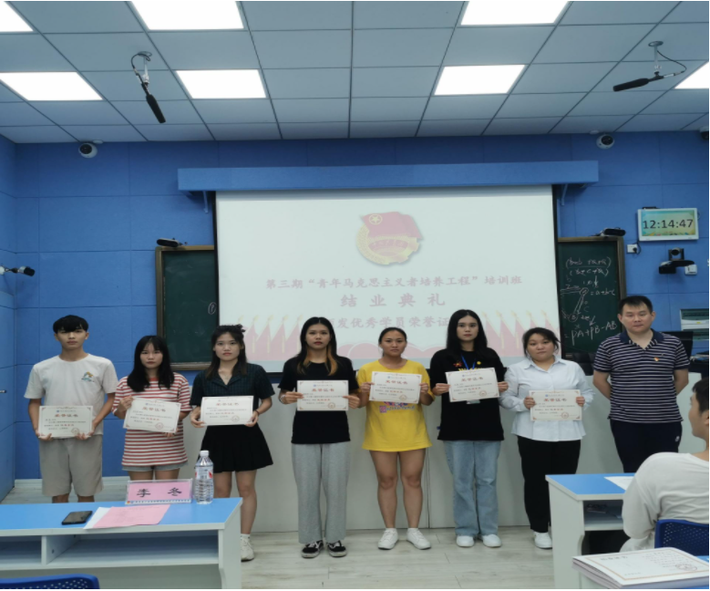 广西国际商务职业技术学院第三期“青年马克思主义者培养工程”培训班结业仪式在大家一齐奏唱中国共青团的团歌《光荣啊,中国共青团》中圆满结束。
