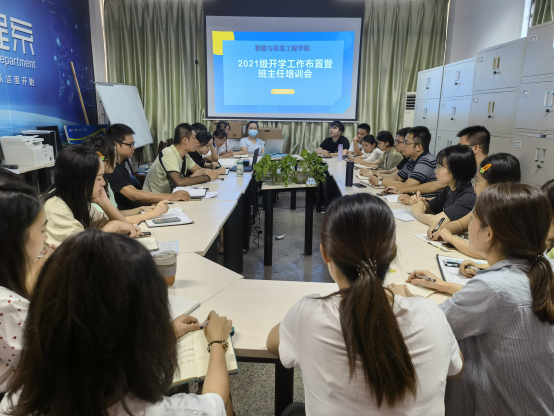 为做好2021学生报到及入学后开展好相关管理工作,智能与信息工程学院于9月9日召开2021级新生接待工作布置暨2021级辅导员(班主任)培训会,全体班主任、辅导员参加此次会议。会议由党总支专职副书记潘慧妮主持。