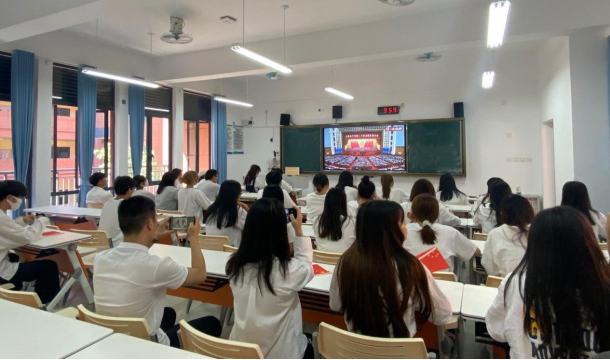 我校党委高度重视,认真组织党员干部、师生员工两万余人收听收看二十大开幕盛况,聆听习近平总书记作的工作报告。学校领导班子、职能部门中层干部集中在大学路校区2栋会议室收听收看直播;各二级学院党总支、校团委、各党支部、校内各单位设立分会场,组织党员和师生收听收看直播。