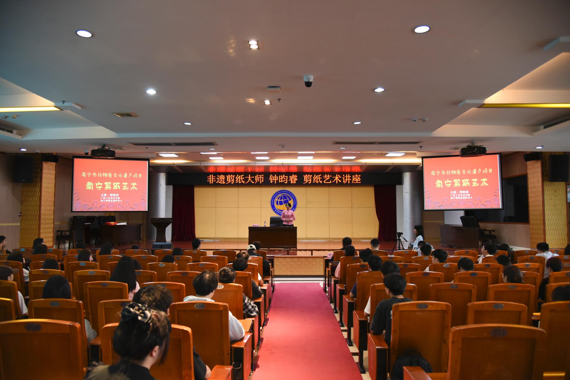 结合传承中国优秀传统文化,推进非遗技艺进校园的要求,学院在技能进阶周期间还开展了以“学习二十大 剪纸润初心 祝福献给党 建设清廉校园”为主题的剪纸技艺教学与实践活动。本次活动邀请南宁剪纸非物质文化遗产代表性传承人钟昀睿老师,现场向师生展示剪纸艺术的魅力。将传承和弘扬中华优秀传统文化与专业教学相融合,在实践中增强文化自信。