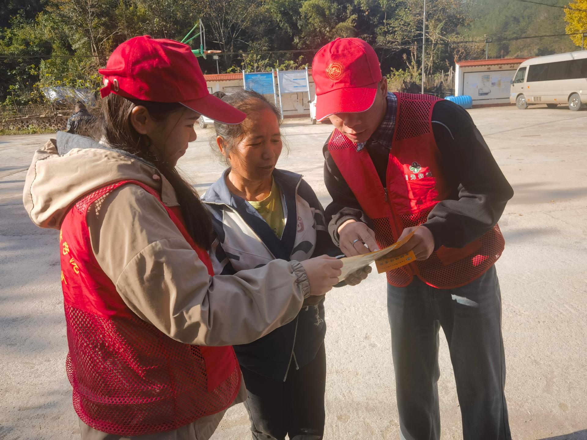 另一行师生代表姚悦溪、何媚媚、朱成瑞在村委设点开展反诈宣传,向村民普及常见诈骗手段及防范措施,并鼓励村民将反诈知识传递给家庭成员,共同筑牢乡村金融安全防线。
