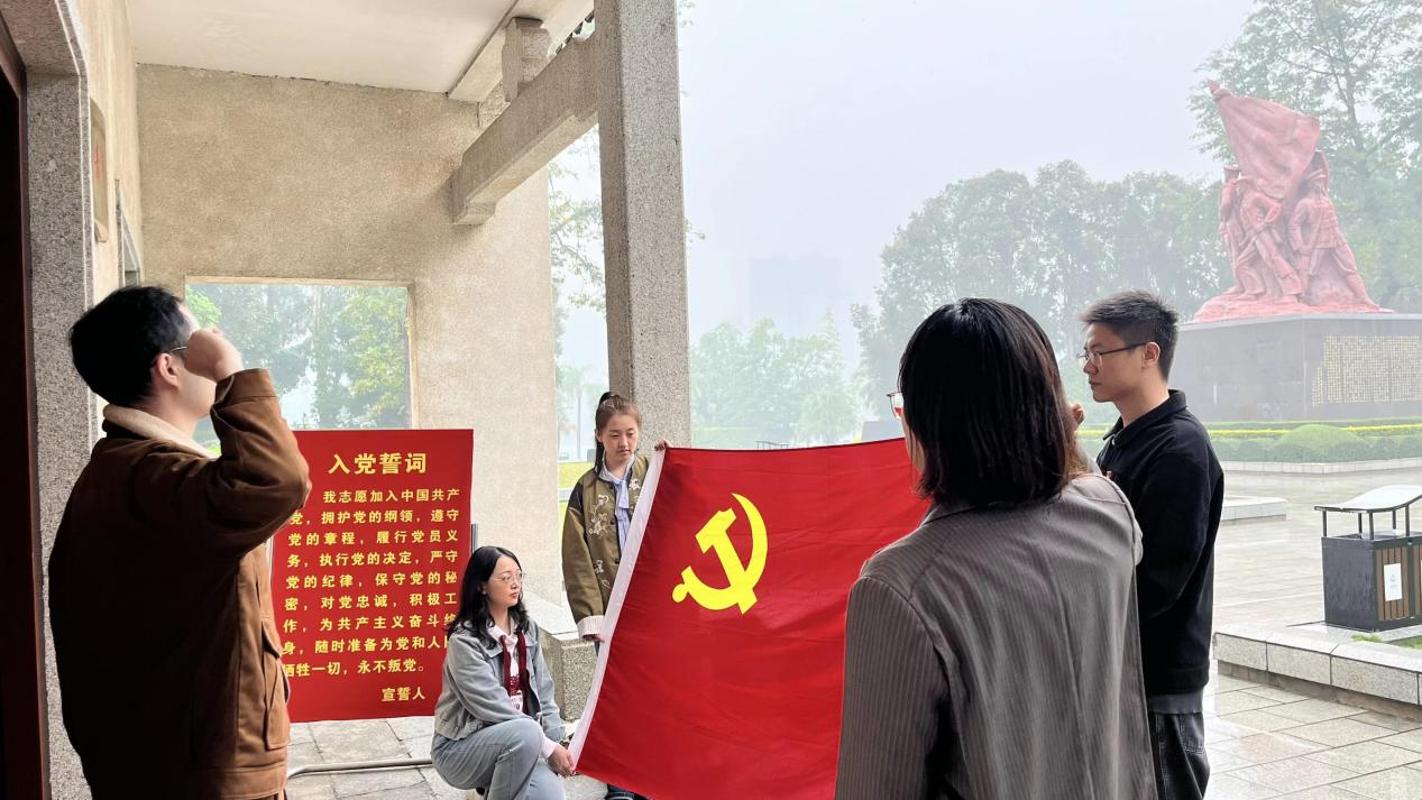 参观结束后,在肃穆的革命烈士纪念馆前,焦李阳带领教工党支部预备党员卢一凡老师进行庄严宣誓,同时全体党员也集体重温了入党誓词。铿锵有力的誓言回荡在纪念馆前,每一句承诺都是对初心的坚守、对使命的担当,进一步坚定了理想信念,强化了党员身份意识和责任意识。