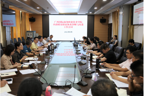 为加快推进2021年度学校内部质量保证体系诊断与改进工作,9月15日上午,广西国际商务职业技术学院内部质量保证体系诊断与改进工作会议在2栋1楼会议室召开。校长王国红、副校长蒋百平出席会议,校内各单位负责人、学校诊改各层面工作组全体人员参加会议,会议由发展规划与质量管理处处长李庆文主持。