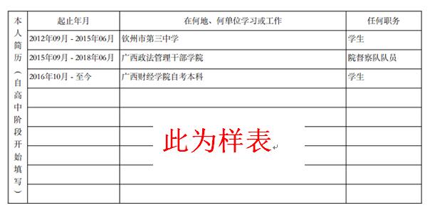 (3)请从高中阶段写起,写读书的时间,不用写工作的时间。时间不要有中断,如果中途转学,请接着时间段写下去。比如:
