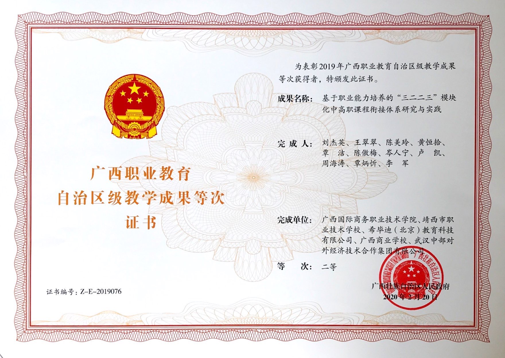 “基于职业能力培养的“三二二三”模块化中高职课程衔接体系研究与实践”教学成果奖