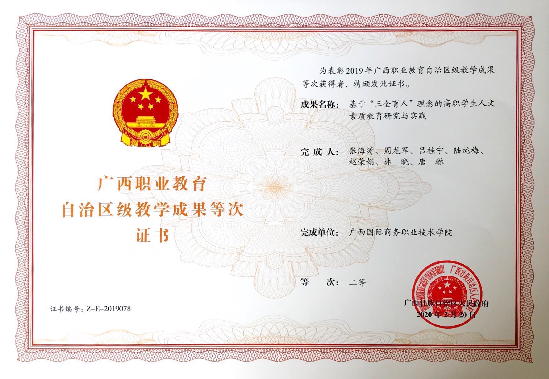 “基于三全育人理念的高职学生人文素质教育研究与实践”教学成果奖证书.jpg