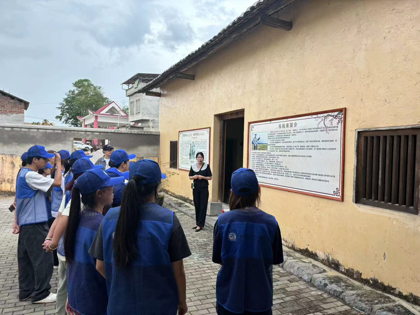 首先,学生们来到了交趾村,这里不仅风景秀丽,更承载着丰富的红色历史。在讲解员的带领下,学生们参观了韦纯束故居和红色革命根据地展厅。韦纯束故居作为历史的见证,以其质朴的建筑风格和丰富的历史内涵,让学生们仿佛穿越回那个烽火连天的年代。在红色革命根据地展厅内,学生们通过一幅幅生动的图片,深入了解了当地革命先烈的英勇事迹和革命斗争的艰辛历程。他们被革命先烈的坚定信念和无私奉献精神深深打动,纷纷表示要铭记历史、传承红色基因。