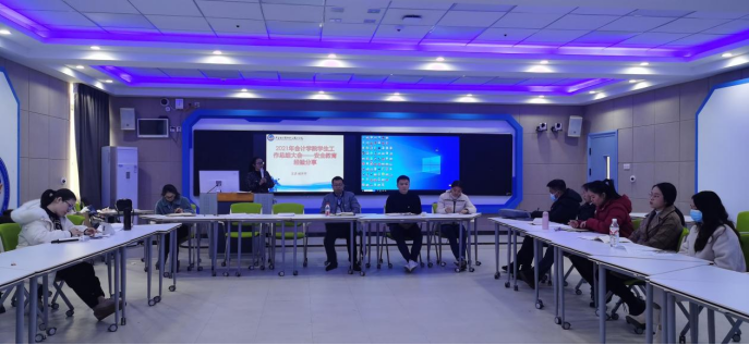 会上,杨芳芳等辅导员分别对2021年度的安全教育、心理健康教育、学风建设、奖惩、团学、资助、易班等专项工作进行总结汇报,并提出各专项的存在的问题。在各专项总结汇报结束后,全体辅导员就各专项工作一年以来遇到的典型问题进行讨论并总结、交流经验。