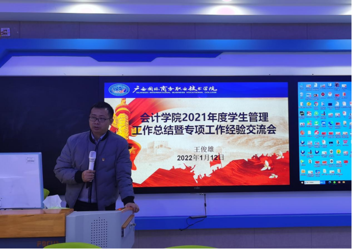 为进一步提升辅导员工作业务能力,加强学生管理规范化建设,1月12日,会计学院召开了2021年度学生管理工作总结暨专项工作经验交流会。会计学院党总支专职副书记王俊雄以及全体辅导员出席会议。