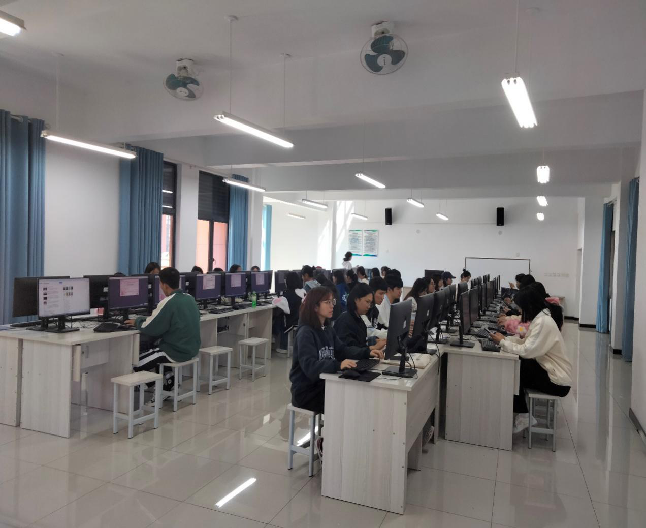 比赛当天,同学们都能按时来到活动场地并找到合适自己的位置坐好,各位现场工作人员细心为参加活动的学生讲解活动规则,以及讲解活动中可能会出现的问题,同学们都能做到在一旁安静的练习,比赛开始,同学们都打起了精神,赛场上响起了各种敲打键盘的声音,指尖在键盘上飞舞,青春在赛场上激荡。