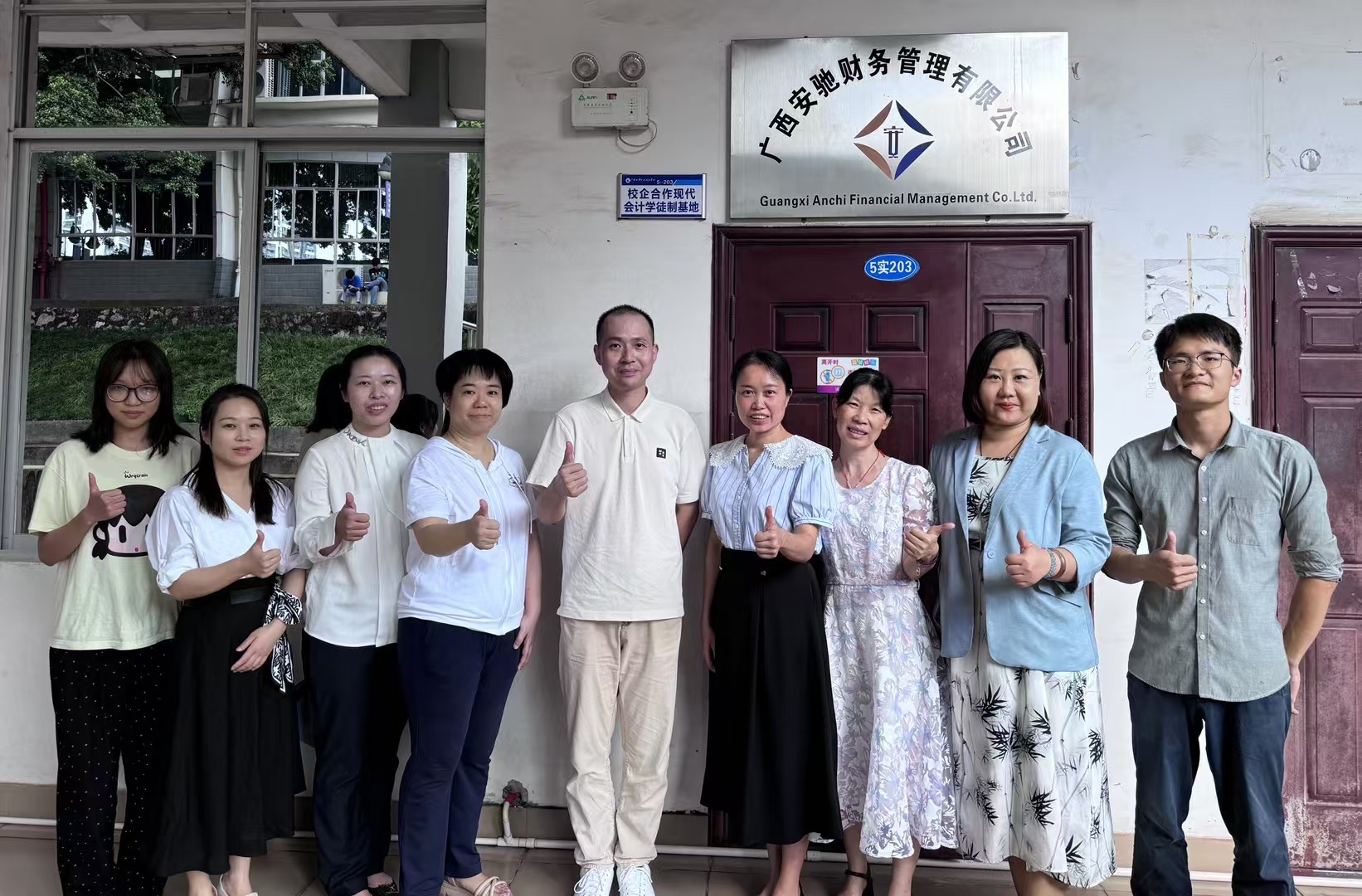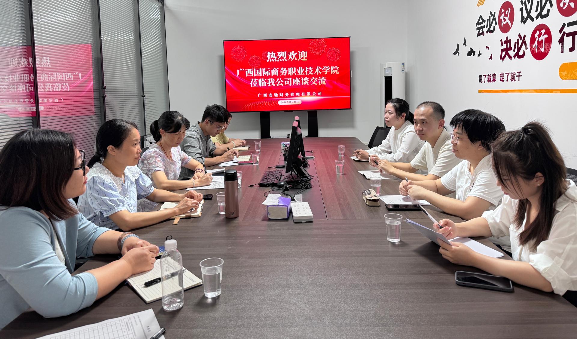 为了推进2022级学生实习工作,充分了解用人单位需求,开拓岗位资源,不断深入探索校企合作、产教融合、深化产教融合,推进协同育人,不断提高我院师生服务区域经济社会发展的能力。2024年10月18日下午,会计学院前往广西安驰财务管理有限公司开展走访实习生、专业分析研讨活动。广西安驰人力资源管理有限公司总经理助理吴静、产教融合部经理周靖儿、项目审核部经理周潮永及其他业务骨干,会计学院实习实训教研室主任马之华、大数据与财务管理专业带头人苏宗敏以及部分骨干教师参加本次活动。
