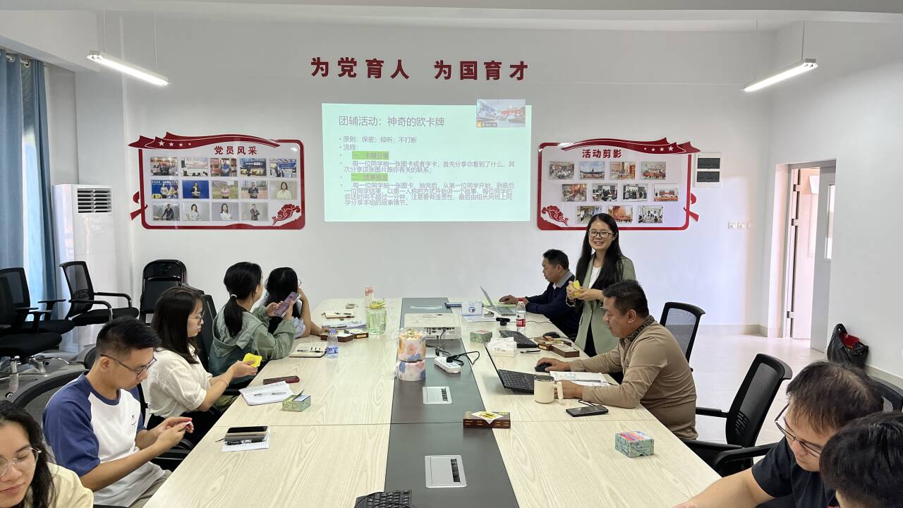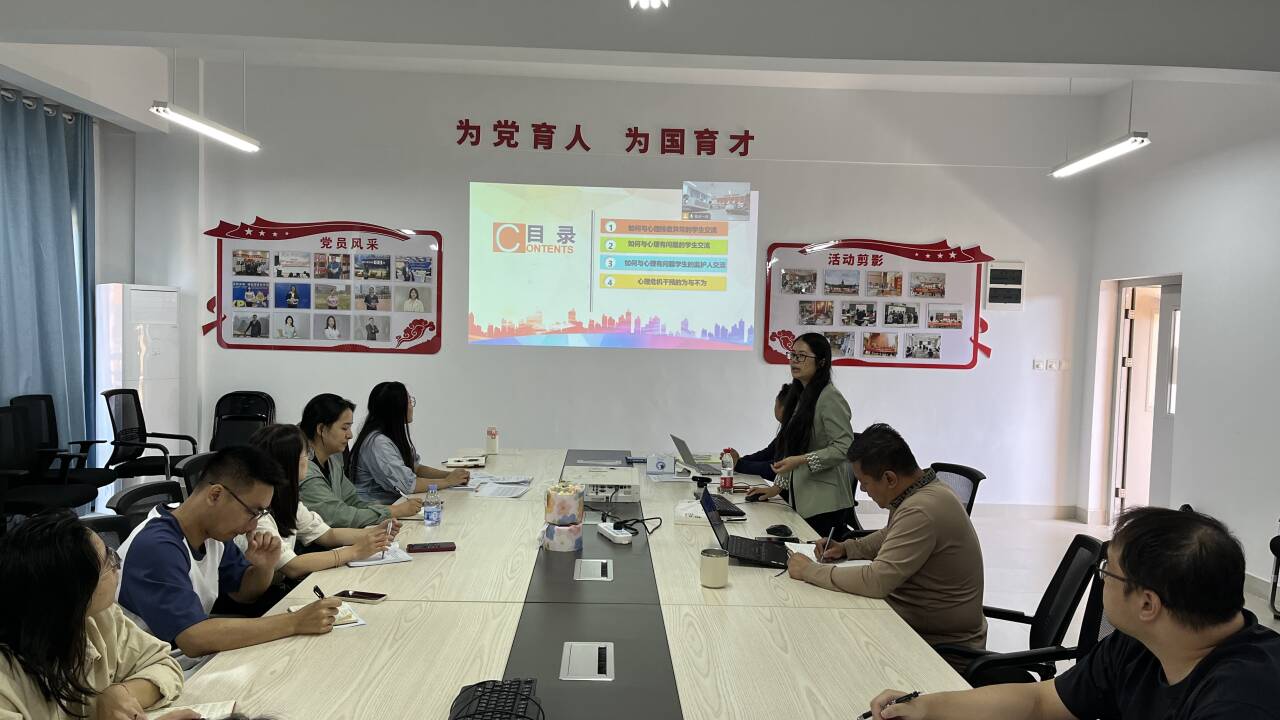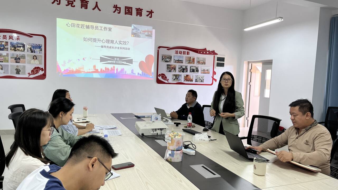 10月24日,为进一步提升心理育人成效,心田花匠辅导员工作室主持人李燕应我校应用外国语学院学工团队邀请,在东盟校区7-3-304开展了“如何提升心理育人实效”的主题沙龙活动。应用外国语学院全体学工人员参与了此次沙龙。