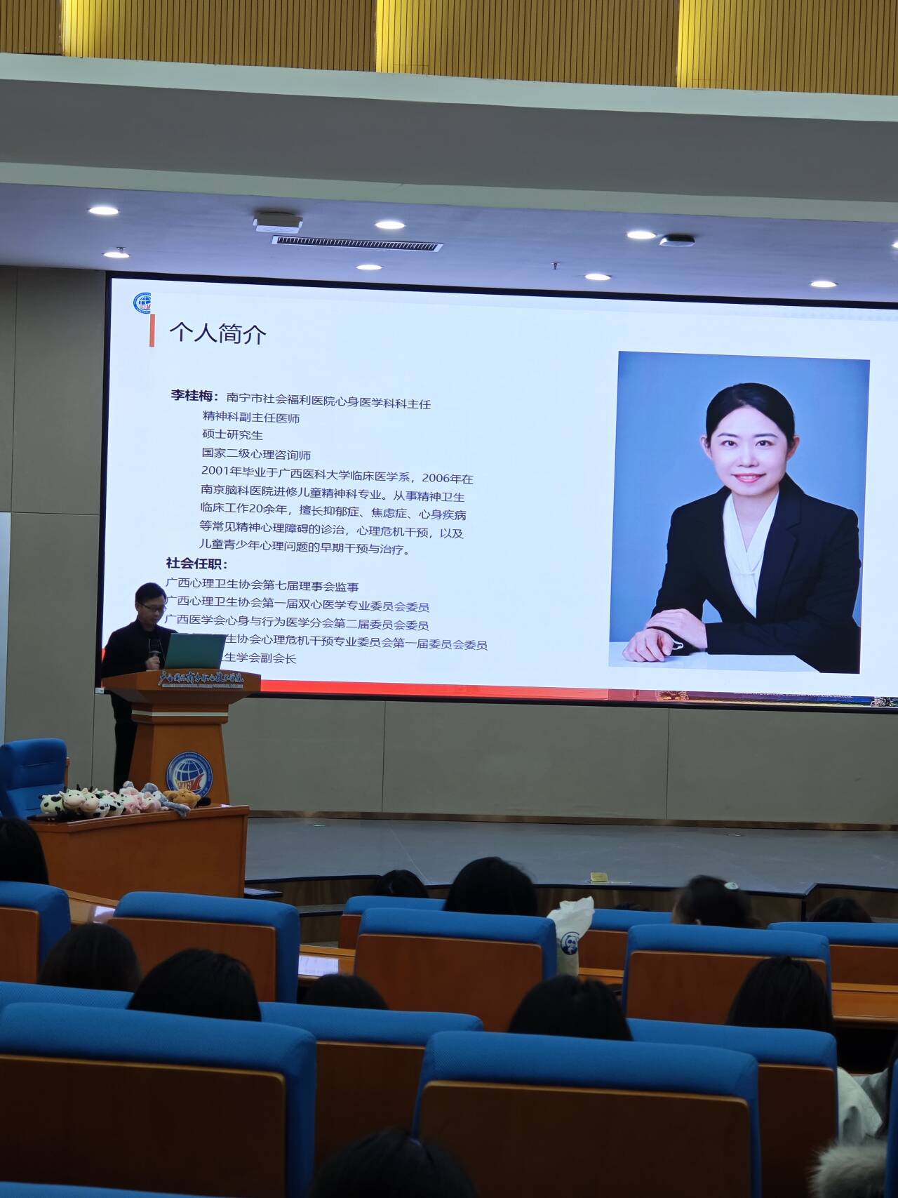 为增强学生心理健康意识,帮助学生掌握科学的情绪与睡眠调节方法,近日,会计学院联合心田花匠辅导员工作室,特邀南宁市社会福利医院心身医学科主任李桂梅,在东盟校区图书馆学术报告厅成功举办了“‘晚安’不难安,情绪不内耗”主题心理健康专题讲座。讲座由会计学院党总支专职副书记王俊雄主持,吸引了220名师生到场聆听,现场气氛热烈。