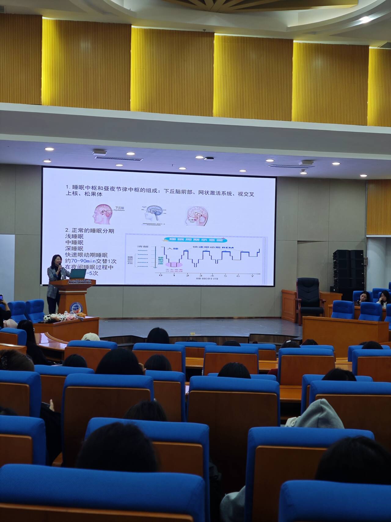 讲座伊始,李桂梅主任以亲切平实的语言,从现代大学生普遍面临的睡眠困扰与情绪压力切入,迅速拉近了与在场同学们的距离。她指出,良好的睡眠是身心健康的重要基石,而情绪状态与睡眠质量密切相关,两者常常相互影响,形成“情绪不佳导致失眠,失眠加剧情绪内耗”的循环。