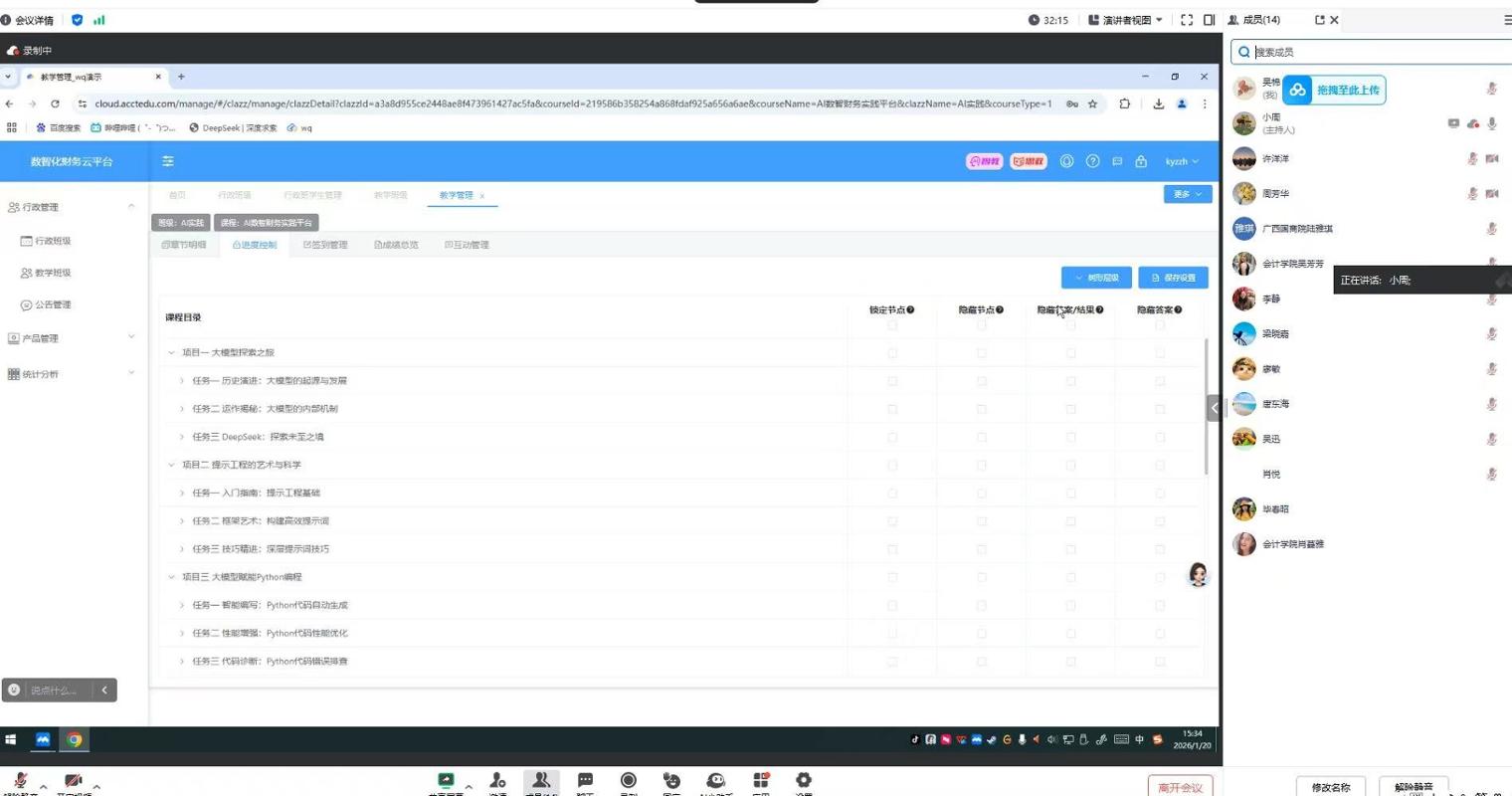 为深入学习贯彻习近平总书记关于教育数字化、人工智能发展的重要论述,以党建引领专业建设高质量发展,落实立德树人根本任务,1 月 20 日,会计学院组织人工智能赋能教师队伍数字化素养提升专题培训,全体教师及相关教学管理人员悉数参训。本次培训紧扣学院服务广西蔗糖产业链数智化转型的发展定位,是党建与业务深度融合、推动教师队伍数字化素养提升的具体实践,为专业课程升级、人才培养提质筑牢根基。