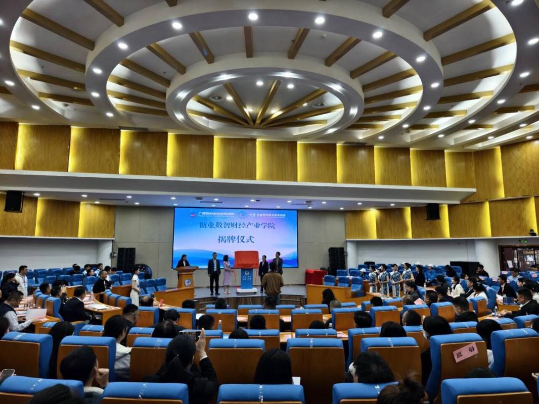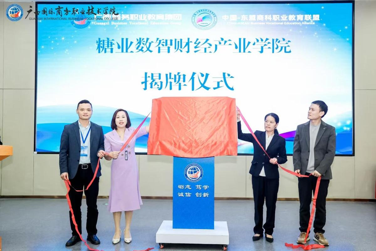 11月29日,恰逢学校 60 周年校庆的喜庆时刻,在广西商务职业教育集团暨中国—东盟商科职业教育联盟年会的重要契机下,糖业数智财经产业学院揭牌仪式隆重举行。会计学院院长徐爱菲、广西泛糖科技有限公司总经理刘经场、广西崇左市湘桂糖业有限公司财务总监宁雪娟、用友网络科技股份有限公司广西分公司副总经理吴征科等校企合作方代表悉数出席,会计学院全体教师到场观摩见证这一产教融合的重要时刻。