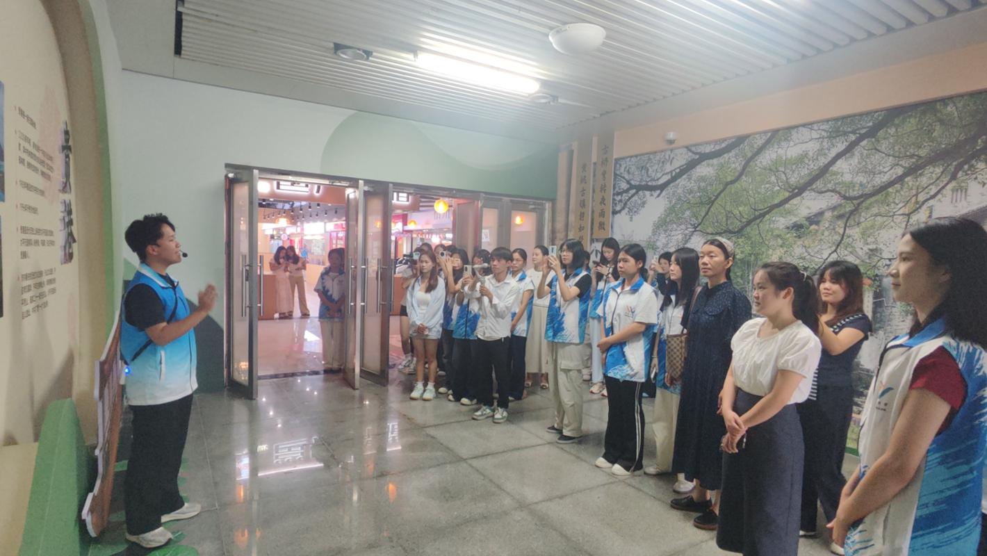 活动伊始,文化与旅游学院讲解小分队的两位讲解员带领师生开启深度探访之旅。从壮锦编织的经纬密码到坭兴陶的窑火传承,讲解员结合场馆展品系统介绍广西各地风物,教师团队则引导学生从创新创业视角拆解场馆运营逻辑。