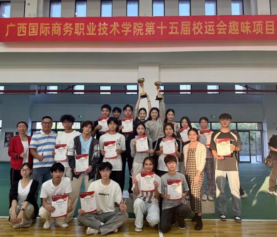 10月28日下午,广西国际商务职业技术学院第十五届运动会趣味项目在东盟校区体育馆二楼举行。文化与旅游学院积极组织学生参赛,组织了多个队伍参与10人9足、动力火车、拔河、超级大锤、花样篮球等项目,经过激烈角逐,并凭借出色的表现取得了优异成绩。