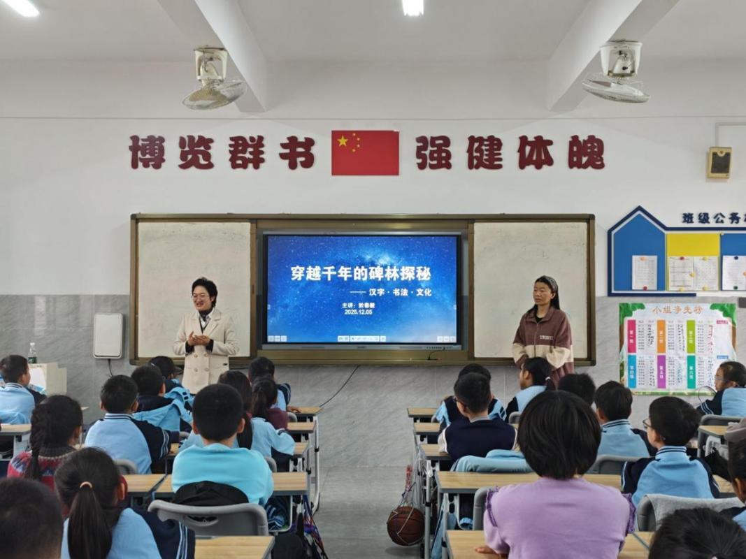 为传承中华优秀传统文化,让小学生感受书法艺术的魅力,12月5日,广西国际商务职业技术学院科学技术协会与文化与旅游学院学生党支部联合走进清川小学,以“穿越千年的碑林探秘”为主题开展科技周书法趣味课堂活动。四年级的小同学们化身“时空小探险家”,在90分钟的沉浸式体验中,解锁甲骨文密码、探秘笔阵图秘笈、实操非遗拓印,开启了一场别开生面的汉字文化之旅。