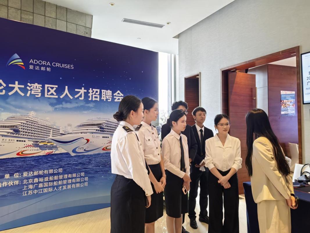 为拓宽学生实习就业渠道,深化校企协同育人成效,助力国际邮轮产业人才培养,我院国际邮轮乘务管理专业14名优秀学子在企业辅导员的带领下,于11月10日至12日前往广州,参加爱达邮轮线下面试。作为2024级该专业学生首次迎战企业招聘,同学们在全英文面试的严格考验中从容迎战,展现了扎实的专业素养与积极向上的职业风貌。