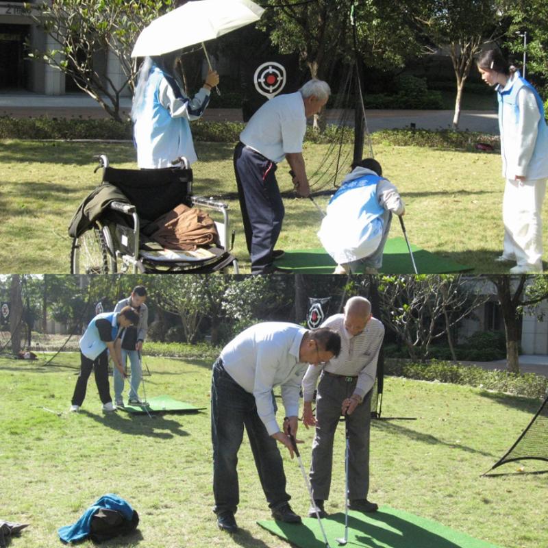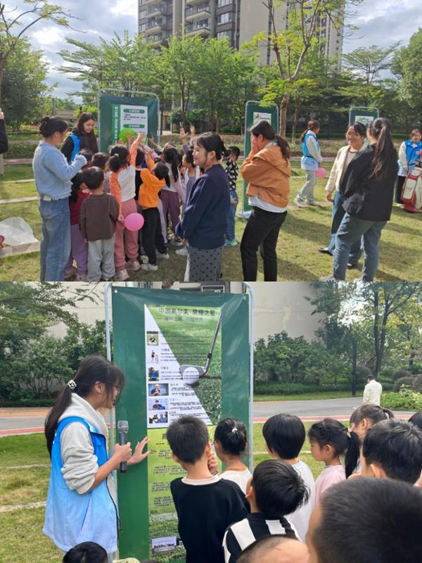 活动现场精心设置文化讲解、推球体验区、击球体验区三大区域。在文化讲解区,同学们以通俗易懂的语言结合趣味图示,向居民详细讲解高尔夫球的发展历史及基本规则,破除了居民对高尔夫球“高门槛”“难操作”的认知误区。推球体验区和击球体验区则成为活动热门打卡地。同学们一对一、手把手地指导居民握杆、站姿、挥杆和推球的动作要领,耐心纠正每一个细节,确保大家在规范的前提下感受运动乐趣。活动现场气氛热烈,居民纷纷排队体验,在轻松愉悦的氛围中舒展筋骨、锻炼反应。
