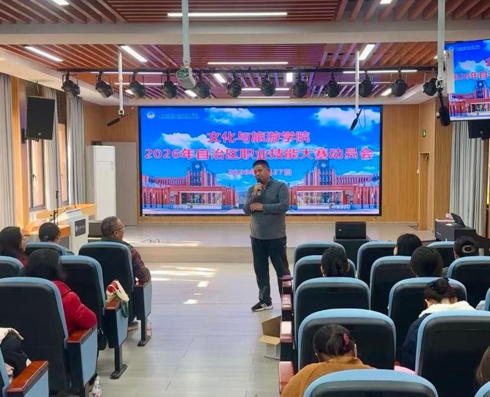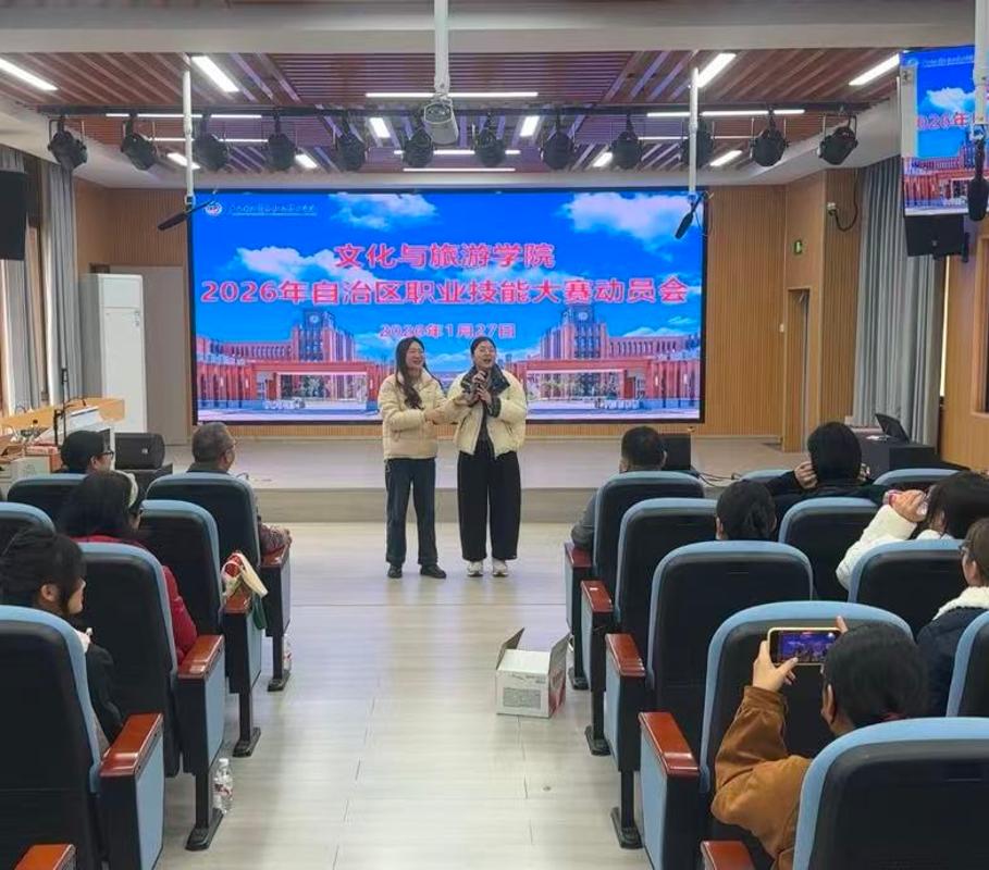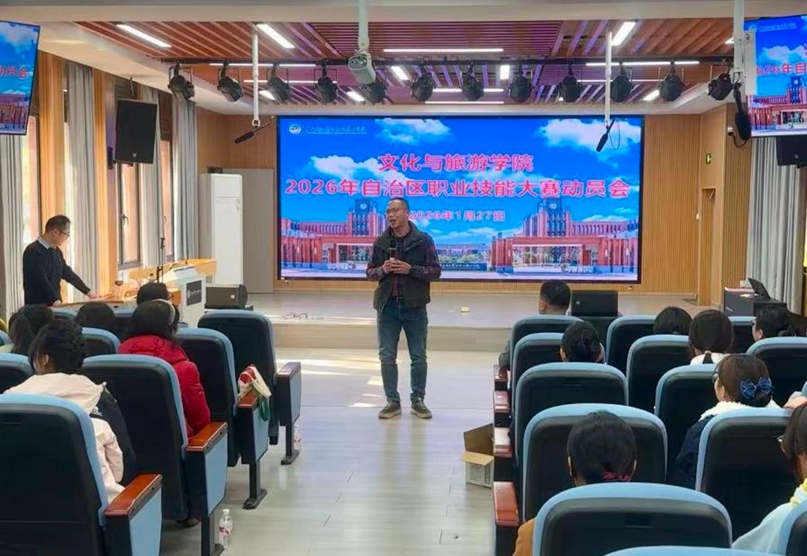 为凝聚备赛共识、激发参赛热忱、明晰备赛方向,1月27日下午,文化与旅游学院在东盟校区8-7-101导游业务模拟实训室隆重召开2026年广西职业院校技能大赛动员会。学院领导班子、赛事指导教师团队及全体参赛学子齐聚一堂,共话备赛事宜,共燃逐梦激情,为即将到来的区级赛事凝心蓄力。