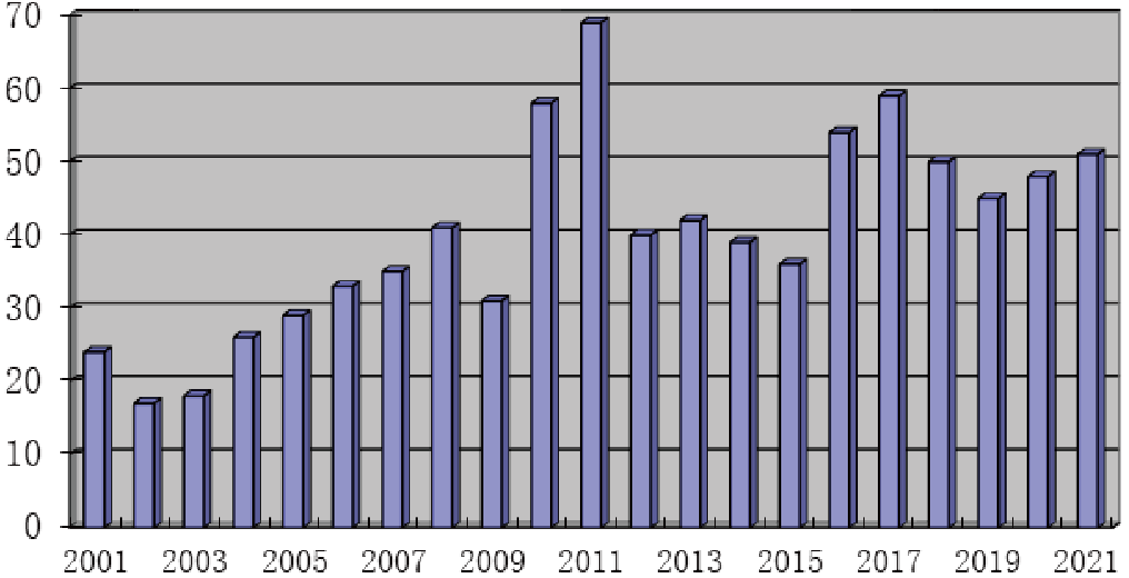 图一:2001年至2021年ITC立案的美国337调查数量表
