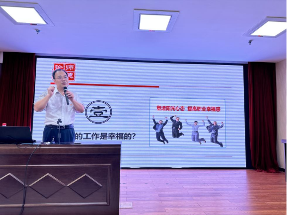 开班仪式后,我校全国模范教师周龙军教授为新入职教职工讲授了开班的第一课。他围绕“厚情怀,守初心,深耕职教幸福人生”主题,从“幸福”这一关键词导入,用诙谐风趣的语言,结合丰富的事例教学,告诉大家成为一名高校教师是幸福的,以及作为一名教师应该怎么寻找幸福,使大家进一步坚定了扎根岗位、倾力奉献,以实际行动做到为党育人、为国育才的信心和决心。大家纷纷表示,将以周教授为榜样,力争尽快适应新环境,当好广大学生的“四个引路人”,努力为我校教育事业高质量发展而不懈奋斗。