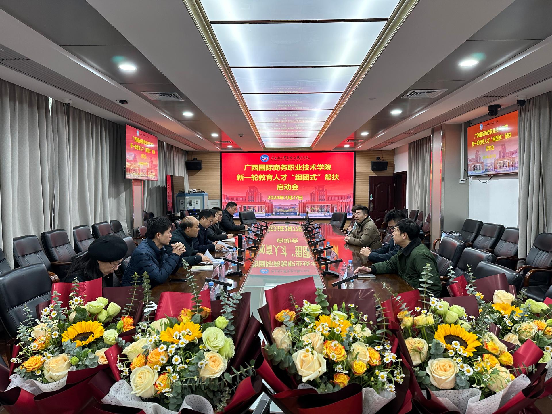 2024年2月27日上午,我校新一轮教育人才“组团式”帮扶启动会在2栋1楼会议室举行。学校副校长蒋百平出席会议,三位派出帮扶教师、相关职能部门和二级学院领导、第一批帮扶教师等参加了启动会。