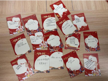 活动最后,全体同学怀揣着激动与敬仰之情,在红色明信片上郑重写下本次活动中的深刻感悟、对党的真挚祝福以及自己的青春誓言,一笔一划承载着初心与使命,一字一句传递着信念与力量。