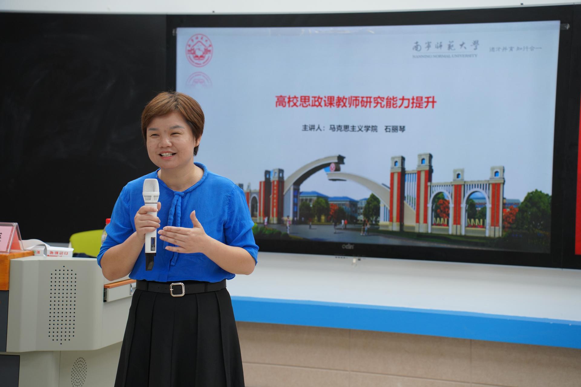 开班仪式结束后,南宁师范大学马克思主义学院副院长石丽琴副教授作了题为《高校思想政治理论课教师研究能力提升》的专题授课。石副院长从高校思政课教师研究能力的理解、思政课教师研究能力提升的重要性、思政课教师研究能力提升的四个重要意识、思政课教师研究能力的重要途径等方面进行详细、深入、生动的讲解,让学员受益匪浅。