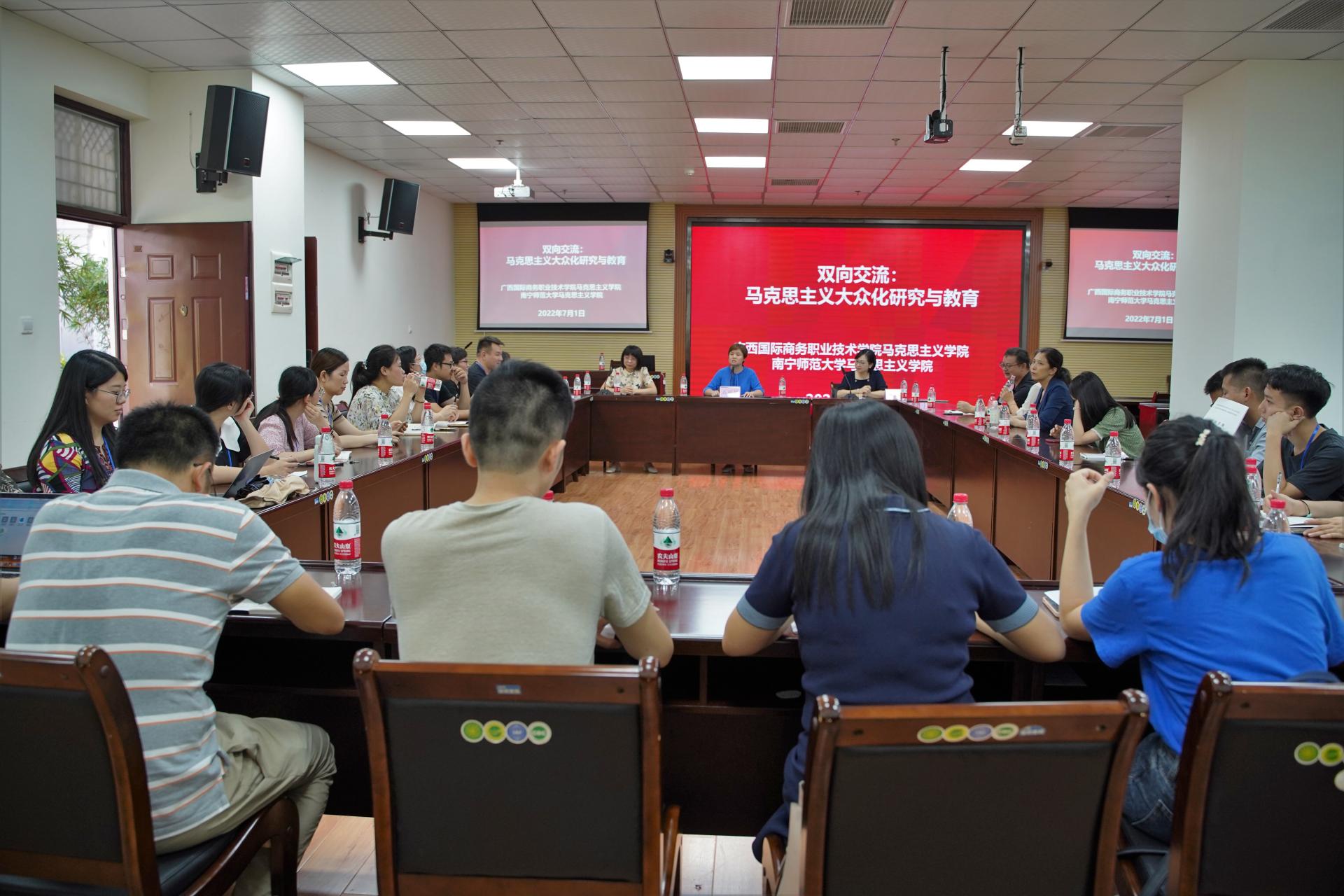 下午,全体学员来到南宁师范大学五合校区,与研修班授课教师围绕“马克思主义大众化研究与教育”这一主题,在马克思主义学院建设经验、思想政治理论课教师队伍建设、思想政治理论课教学改革、思想政治理论课程建设等方面进行双向交流。