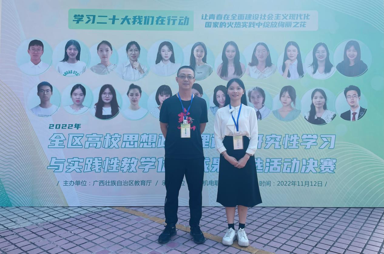 为深入学习贯彻习近平总书记关于“大思政课”建设的重要指示批示精神,充分运用社会大课堂提升思政课的针对性、实效性,增强大学生学习思政课的积极性和获得感。近日,自治区教育厅主办的2022年全区高校思想政治理论课研究性学习与实践性教学优秀成果评选活动结果公布,由我校马克思主义学院教师梁芷铭教授指导,我校学生李雨婷、覃作椅、翁燕美团队提交的作品《文化认同视角下大学生铸牢中华民族共同体意识现状调查与分析——以广西高职学生为分析样本》在同研究生、本科生同台竞技中,荣获二等奖。