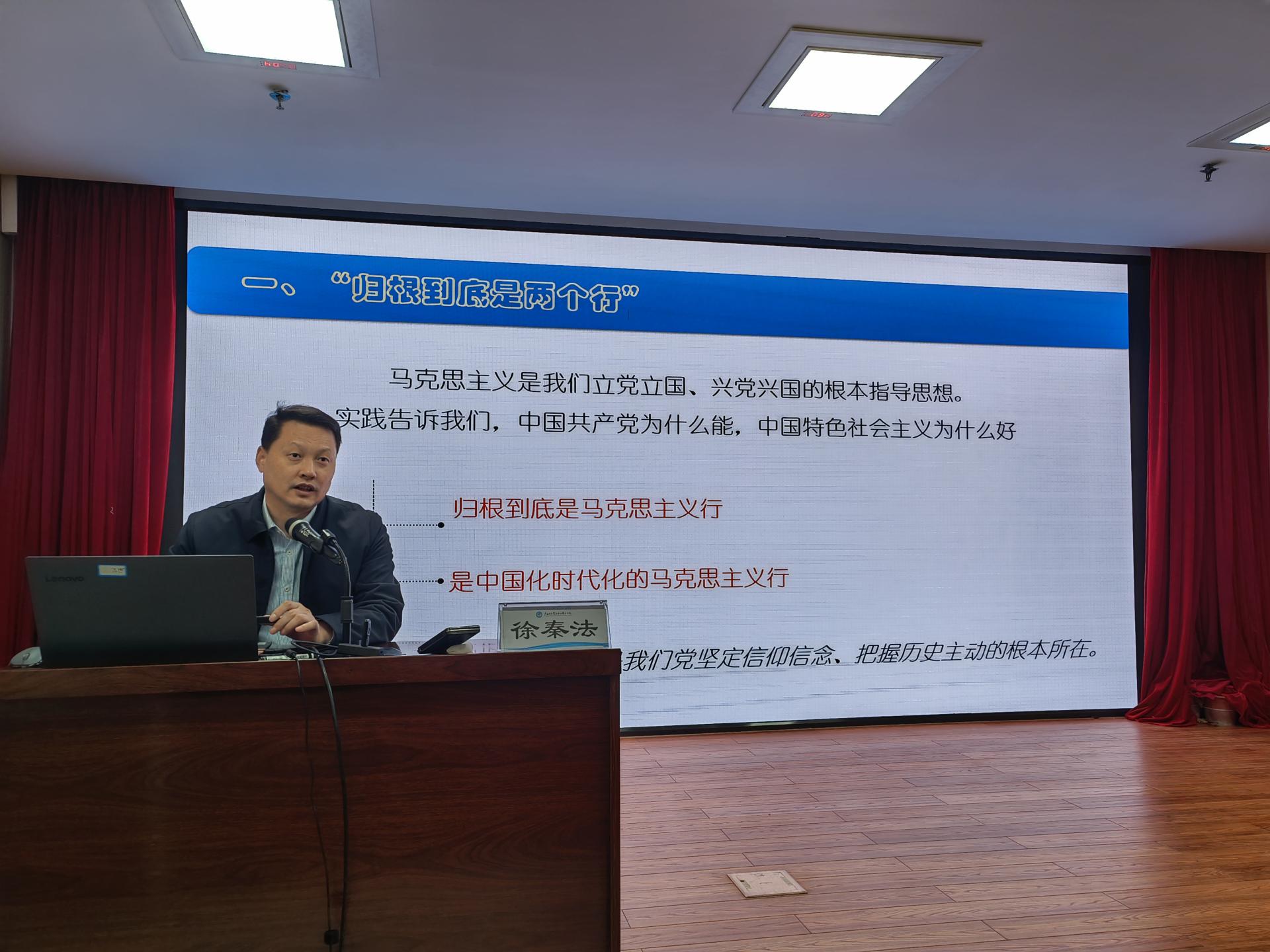 徐教授讲座专题为《开辟马克思主义中国化时代化新境界》。徐教授专题讲座内容主要包括五部分:“归根结底是两个行”;阐发“两个结合”的根本途径;明确“三个板块”的主要内容; “六个坚持”的世界观方法论;中国式现代化的理论体系等。徐教授以严谨朴实的学者师者风范,科学严谨、脉络清晰、有深度有温度还有风度地诠释了“党的二十大精神”丰富内涵,进一步深化了教师们对“党的二十大精神”的理解,为思政课教学工作奠定更坚实的思想理论基础。