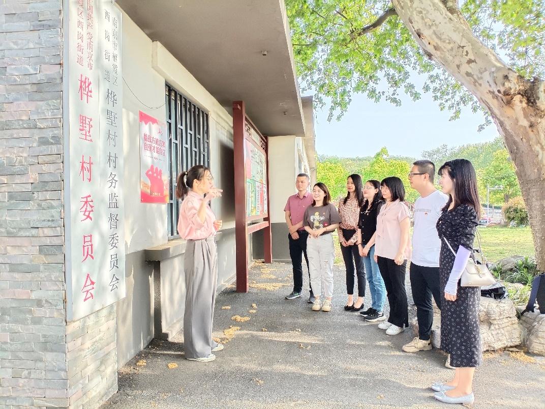 4月17日,调研组一行9人来到了南京市栖霞区桦墅村开展主题调研暨党建活动。党员教师熊双桃在村委会为众人上了一堂生动的党课。她指出,桦墅村是一座拥有1500年历史的古村落,由于在推动乡村振兴全面发展过程中坚持党建引领和绿色发展理念,开发乡村文旅产业,大力发展合作经济,十年间,村集体年收入从20万元快速发展到近千万元,成为了“中国美丽休闲乡村”和“全国休闲农业与乡村旅游示范点”。
