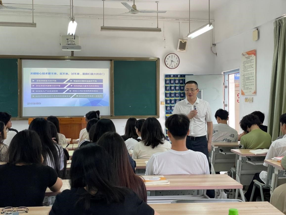 6月11日,汪述斌来到思政课教师钟金丽老师的课堂,检查“习近平新时代中国特色社会主义思想概论”课的教师授课进度和教学内容,观摩教师授课。课后,他与同学们沟通交流时政热点,征求和听取同学们关于学校思政课建设的建议意见。