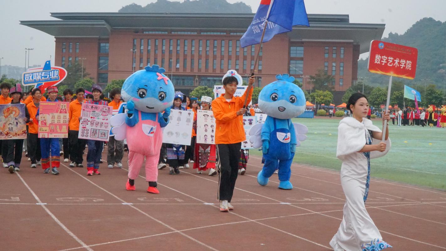 12月4日至5日,我校第十五届校运会在校园绿茵场盛大举行。本届校运会通过丰富多彩的体育竞技活动,增强师生体质,培育团队协作精神,全方位展现我校师生昂扬向上的精神风貌。数字艺术学院师生踊跃参与,在为期两天的赛事中奋勇拼搏、亮点纷呈,用汗水与实力书写了青春华章。开幕式上,数字艺术学院入场方阵凭借独特创意与饱满热情成为全场焦点。学院专属吉祥物 “小数”“小艺” 活力领跑,紧随其后的数艺青年学子身着统一服装,迈着整齐划一的步伐,精神抖擞地走过主席台,嘹亮的口号传递出蓬勃朝气与奋进决心。...【查看详情】