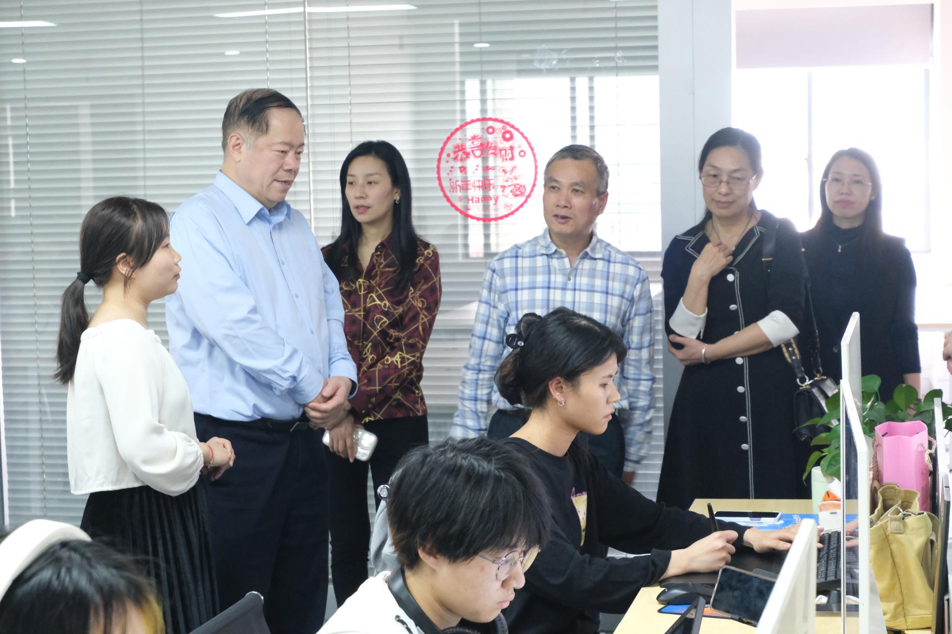 3月10日下午,为贯彻落实党中央、国务院关于高校毕业生就业工作的决策部署,推进产教融合,校企合作,落实2023年度访企拓岗促就业工作要求,了解学生实习情况。学校党委书记谢云在副校长班克庆、招生就业处副处长唐进淑、文化与旅游学院院长莫颖、数字艺术学院院长曾海文、数字艺术学院党总支副书记黄恒拾等陪同下,前往位于南宁市高新区创客城的广西源设动漫设计有限公司开展访企拓岗及产教融合调研活动。该公司是校企合作单位武汉中部对外集团在南宁成立的子公司,亦是数字创意产业学院产教园项目的校外载体。