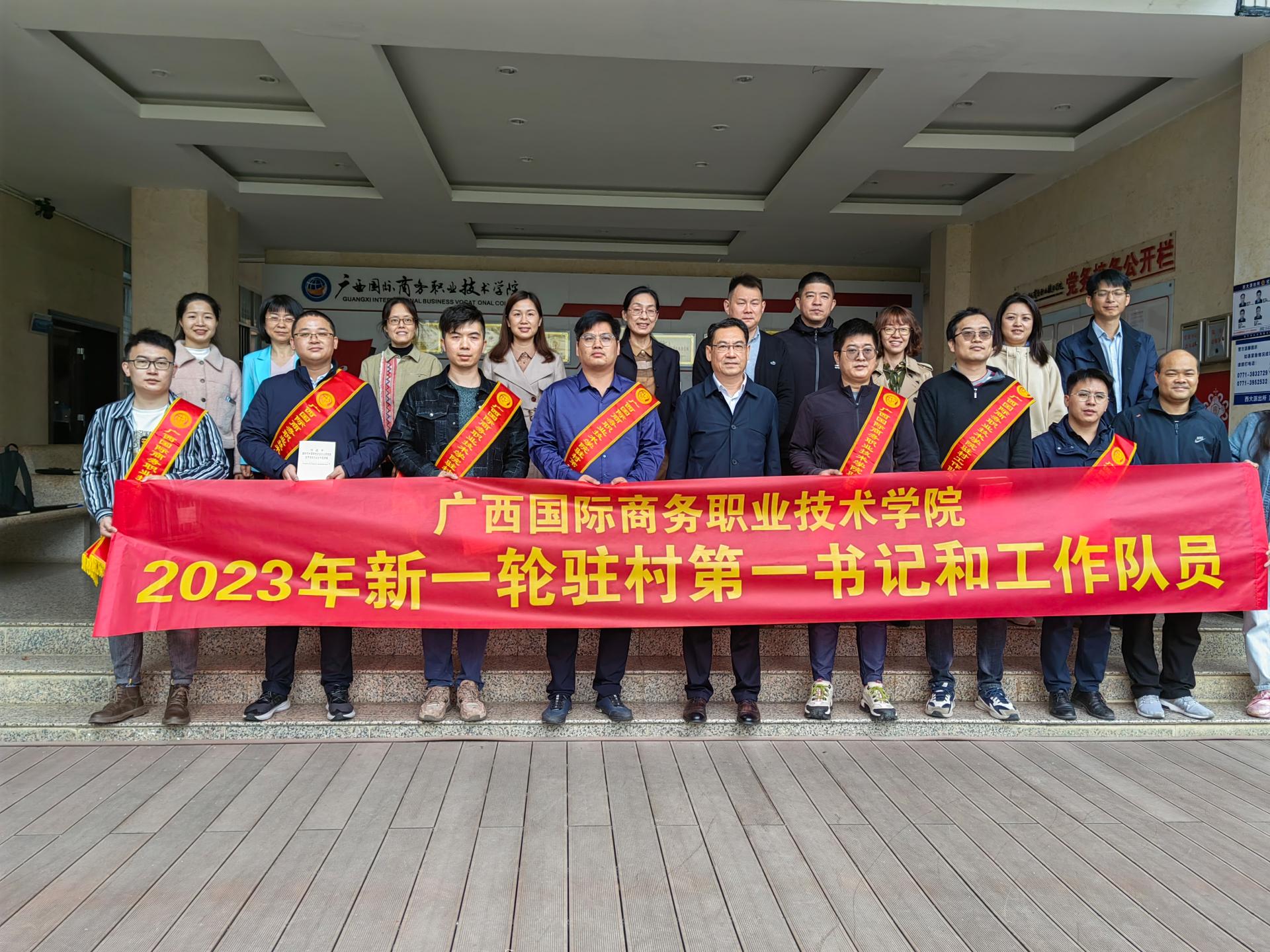学校领导及各学院代表与2023年新一轮驻村第一书记和工作队员合影留念