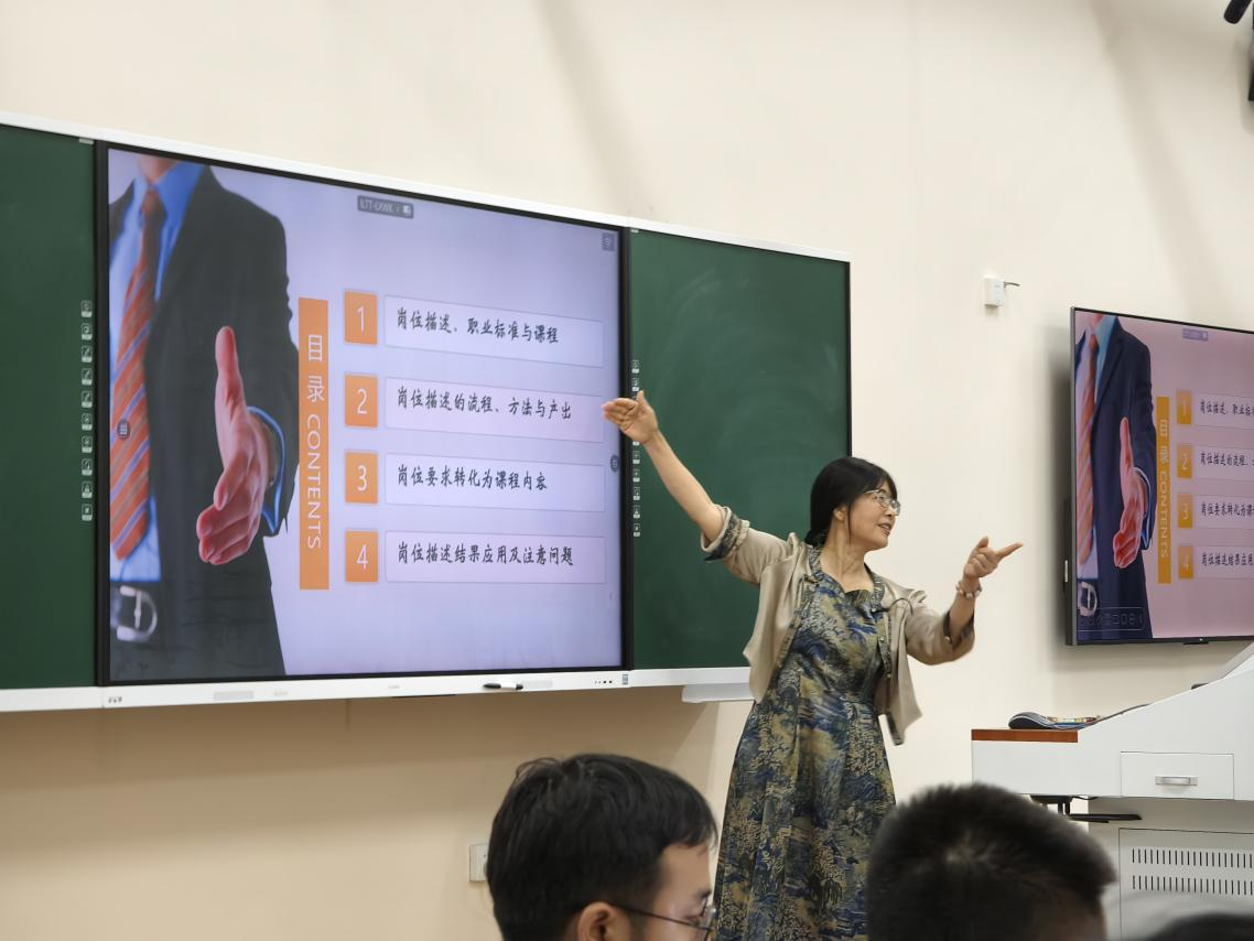 本次邀请国内专家黄艳芳、王文槿两位教授授课,专家从师德师风、专业建设、课程开发三个维度出发,分析讲解了以下七个模块的培训专题:专业、课程各级标准建设的思路与方法、岗位分析与描述的具体操作步骤、基于岗位能力需求的课程体系建立、人才培养方案的撰写、模块化课程标准开发、带学习成果测评的教案编撰、基于能力提升的测评设计和训练方法。