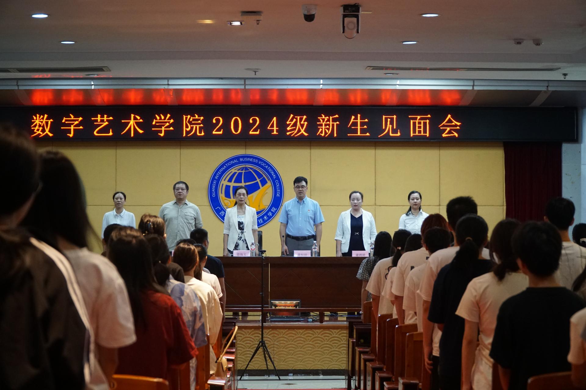 新生见面会开始全体起立奏唱国歌