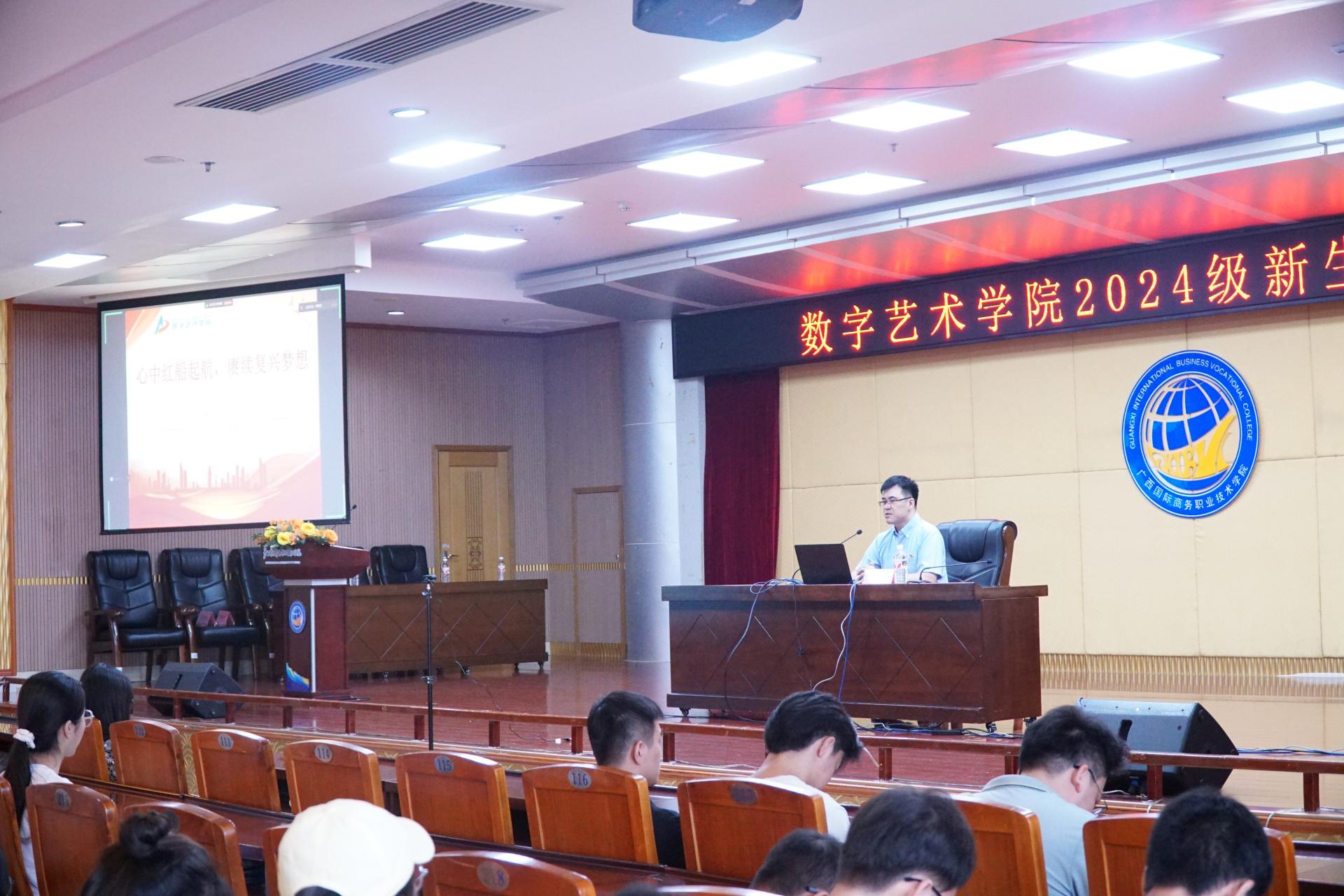 9月8日上午,为切实做好2024级新生入学前教育工作,深入贯彻落实立德树人根本任务,引导大学生树立正确的世界观、人生观和价值观,帮助新生尽快了解和适应新环境,数字艺术学院召开了2024级新生见面会暨入学教育。本次见面会采用线上线下相结合的方式,在大学路校区图书馆11楼学术报告厅设主会场,另在4栋教学楼设分会场5个。学院院长曾海文、党总支书记黄恒拾、副院长叶军、办公室主任谢娉婷、团总支书记谭丽君、教研室主任张冬冬以及2024级各班专兼职辅导员参会。会议由谭丽君主持。