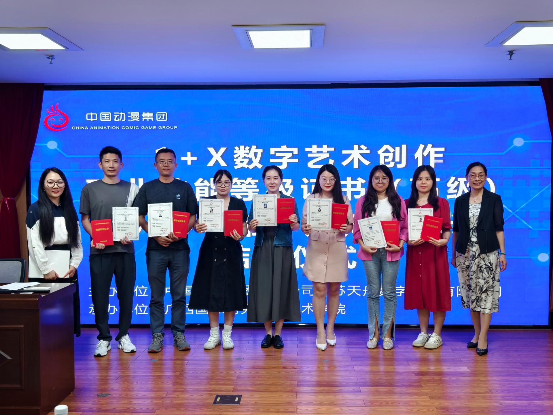 揭牌仪式后是培训班的结业仪式,曾海文、袁瑞平为参训教师颁发1+X数字艺术创作职业技能等级证书全国高级师资证书及考评员证书。袁瑞平在结业仪式上发表了总结发言,她对培训成果给予了高度评价,并期待各位老师将所学知识运用到实际教学中,为培养更多优秀的数字艺术创作人才贡献力量。