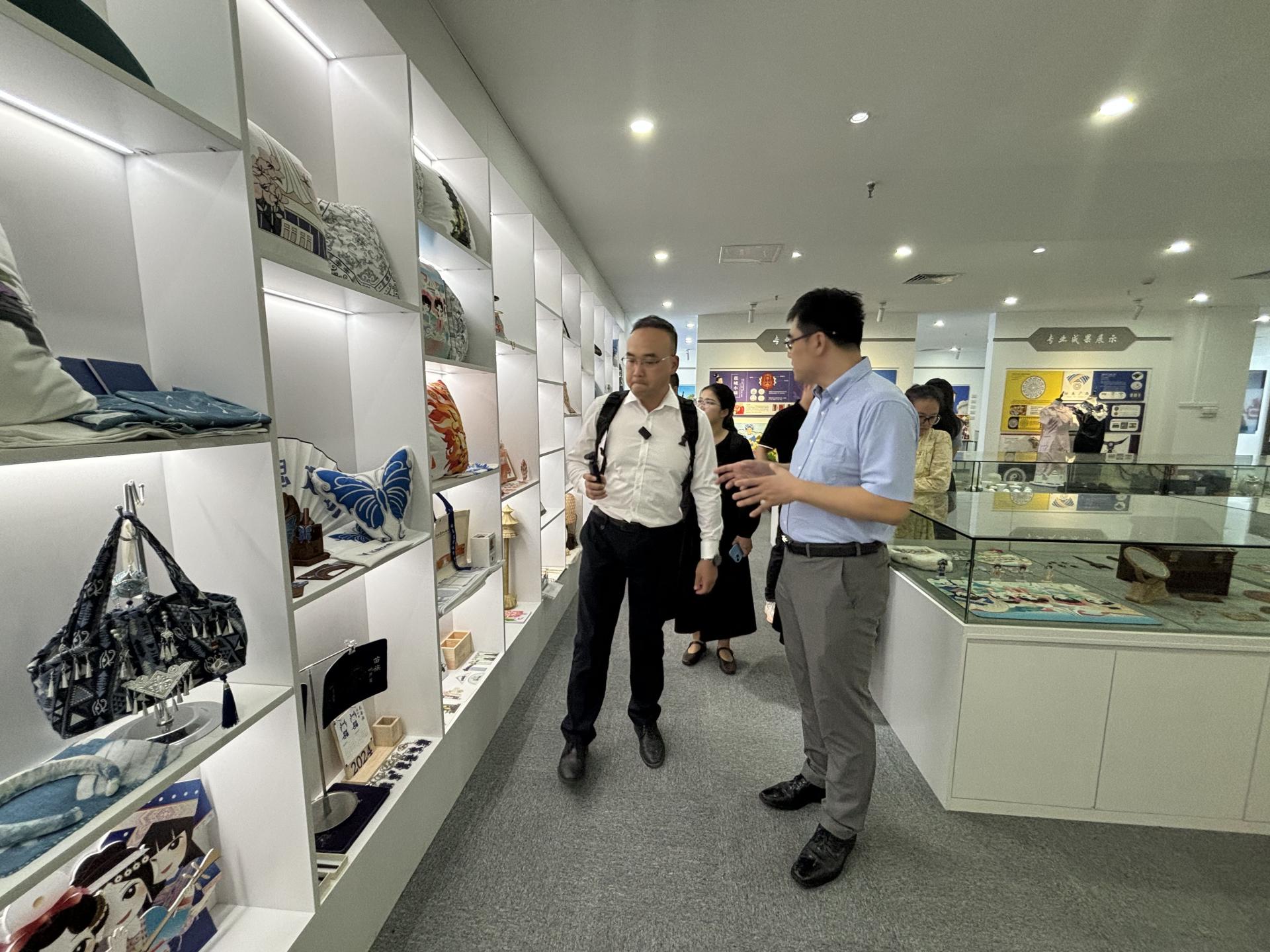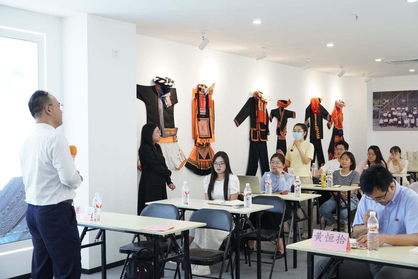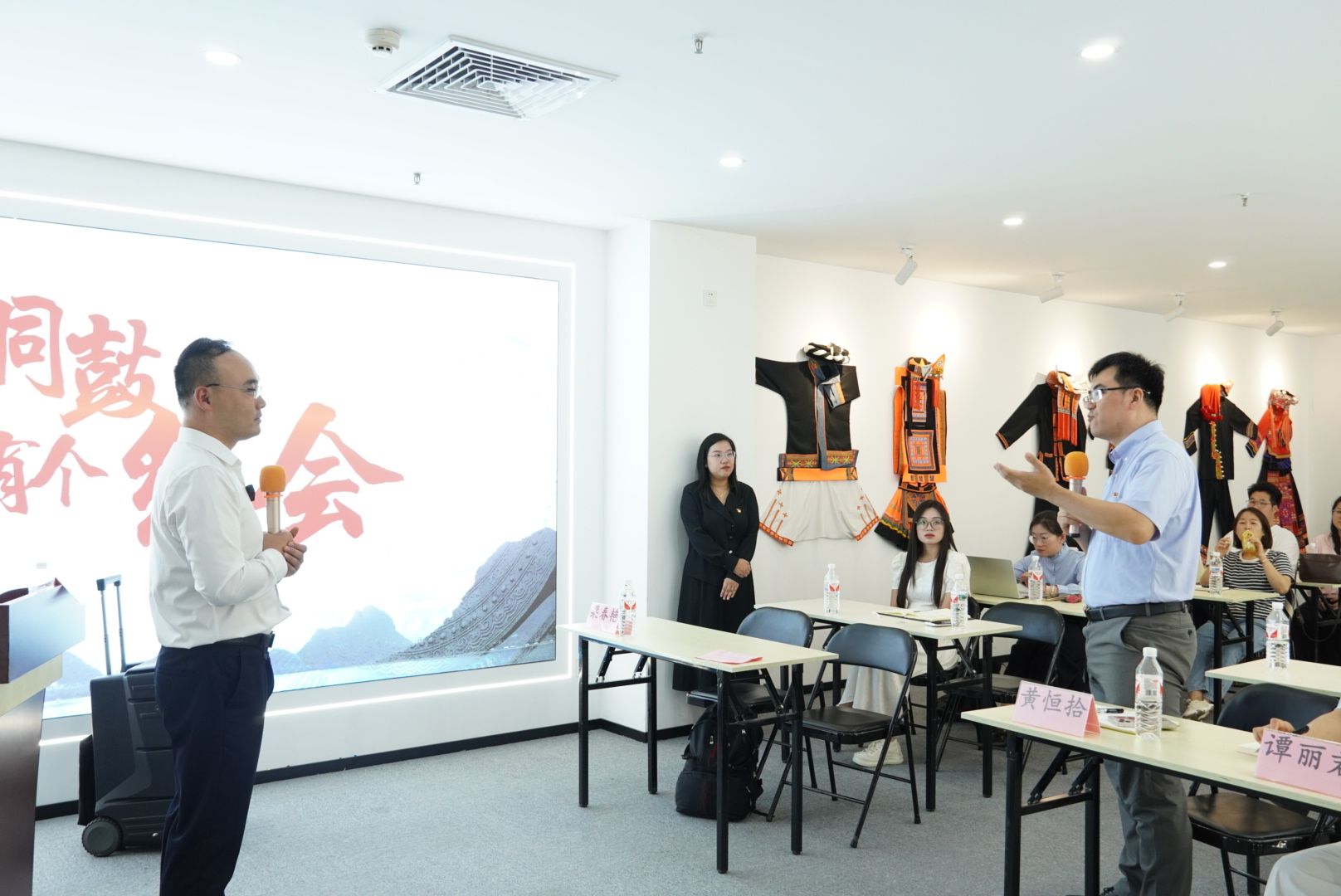 本次沙龙活动由“艺”起“琳”听辅导员网络思政工作室主持人程琳丽主持。在沙龙开始前,黄恒拾引导嘉宾参观自治区示范性民族文化传承创新职业教育基地,并介绍基地的发展历程、建设情况,以及展示厅内陈列着的一件件富有创意又独具匠心的学生文创作品。